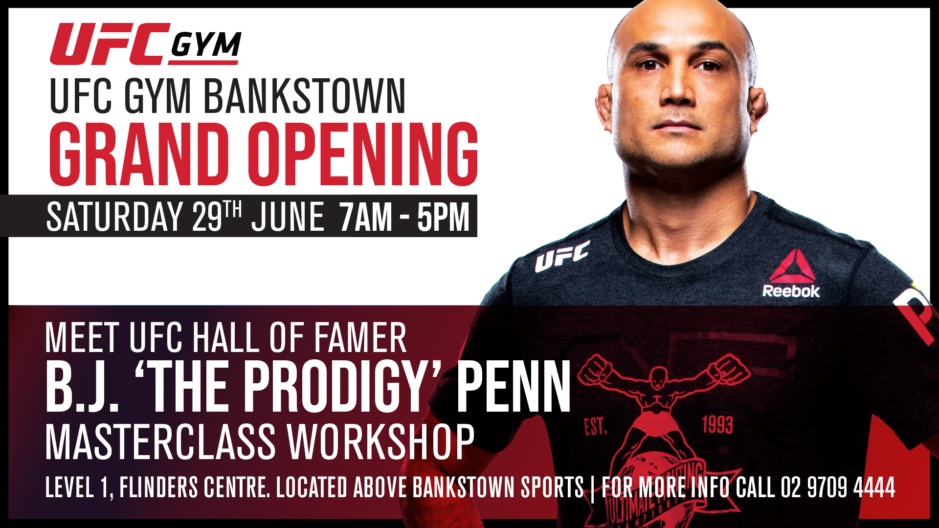 Don't miss out on this once in a life time opportunity to meet and greet one of the pioneers of the UFC, BJ PENN at our Grand Opening at UFC Gym Bankstown on Saturday 29th of June.